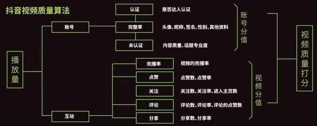 視頻質(zhì)量有兩個(gè)評(píng)分標(biāo)準(zhǔn),一個(gè)是賬號(hào)的資料完善度,一個(gè)是視頻本身的質(zhì)量,提高賬號(hào)分值正如上圖,按圖索驥去完善就可以,而提高互動(dòng)就是重中之重。